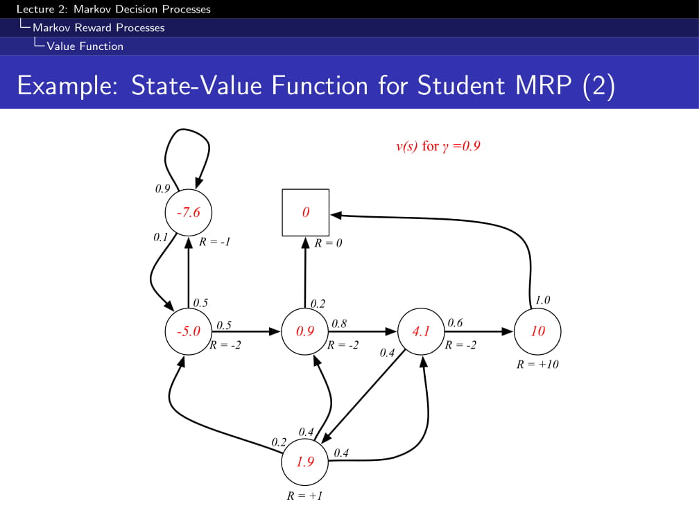 Reward는 각 t state에서 다음 t+1 state에서의 reward의 평균