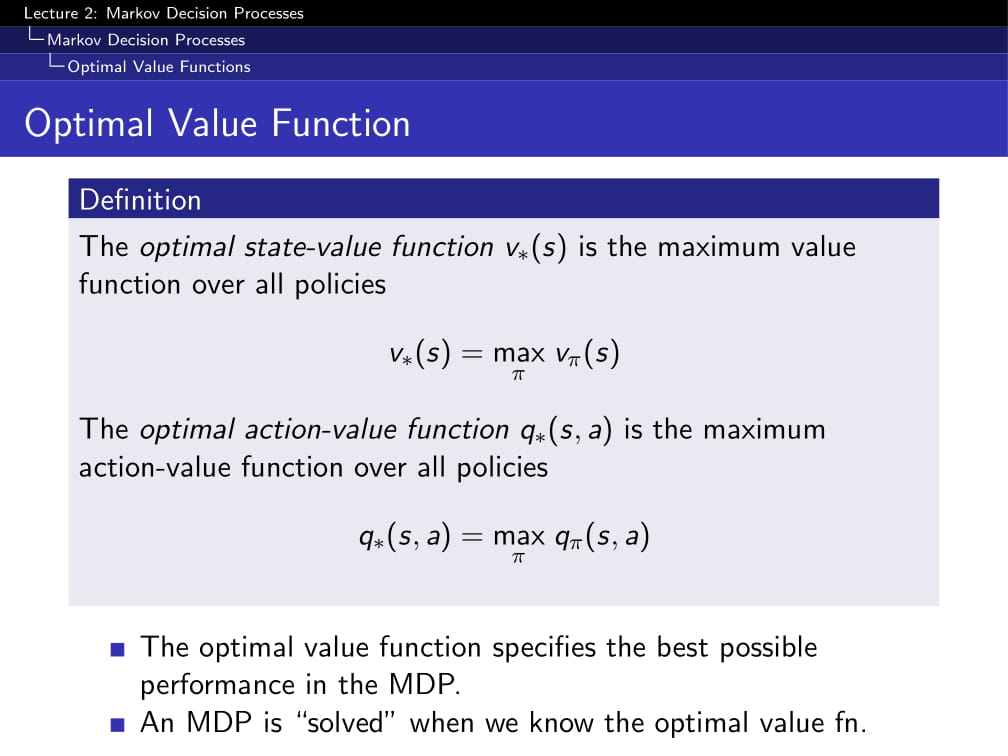 optimal value funtion은 dmp에서 가장 좋은 방법을 찾는것이다.