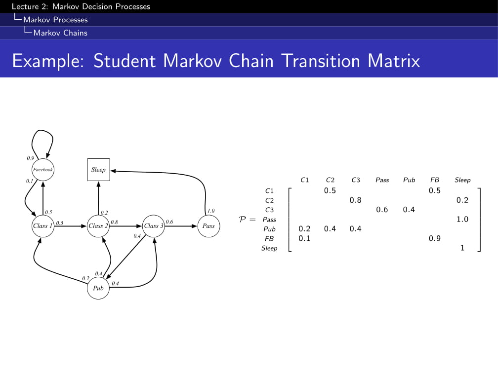 이런 process를 행렬(state transition matrix)로 표현할수있다.