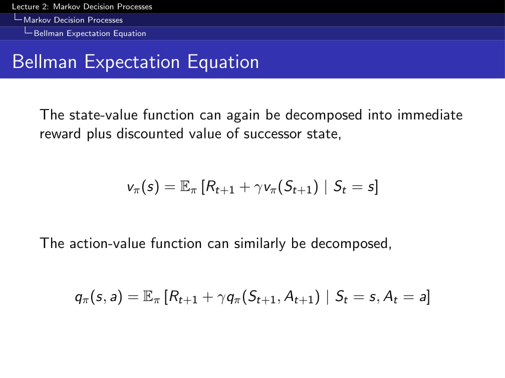결론은 bellman expectation을 이용한 V를 파이를 따랐을때의 V로만 이루어진 함수로 표현할수있다.